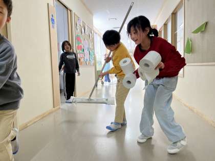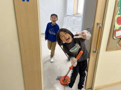 掃除にも時間いっぱい、一生懸命に取り組む3年生です。最近では「もう掃除終わり?もっとしたい!」と話す子供も増えてきました。