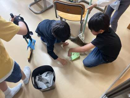 1年生 素敵な姿 公開日 2024/04/18 更新日 2024/04/18 1年生 4月18日(木)は、歯科検診の関係で掃除がありませんでした。しかし、歯科検診後に教室へ戻ると、掃除をしている子供たちがいました。理由を聞くと、ごみ箱につまずいた子がいて、片付ける手伝いをしていたとのことでした。進んで手伝い、きれいになるまで掃除をするなどとても素敵な姿でした。
