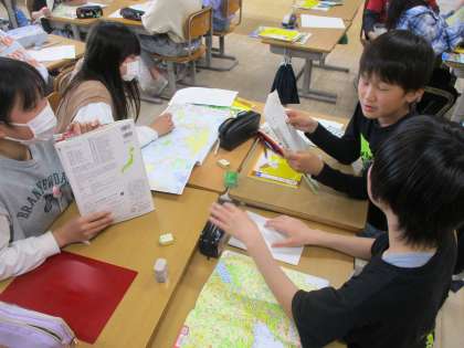 地図帳を使っていろいろな国の首都や特産品を調べクイズを出し合いました!
