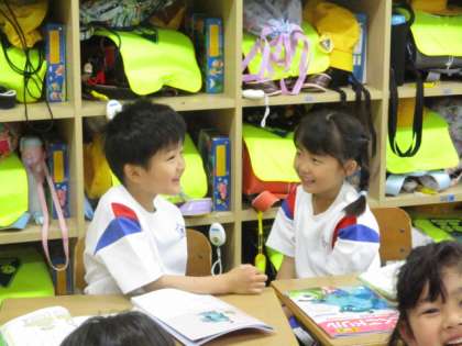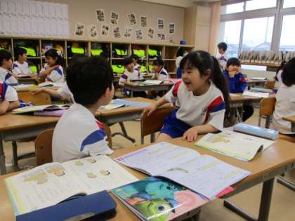 ペアで質問をしたり、質問に答えたりしました。返答後にもう一度質問をするなど、よく聞いて話していました。