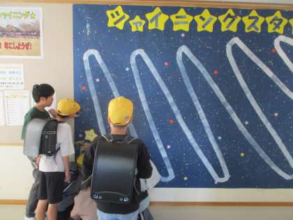 学年掲示が完成しました。卒業までの1年間の思い出や頑張りを残していきたいと思います。
