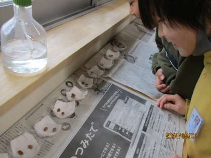 理科の学習で発芽の条件を調べています。まずは、水が必要かどうか確かめるための実験をしています。