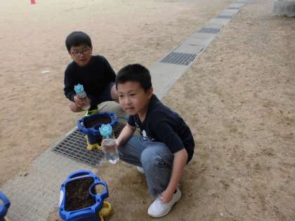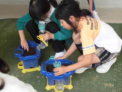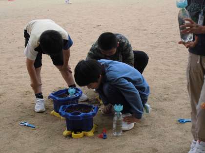 一人一人が、植木鉢にホウセンカの種を植えました。