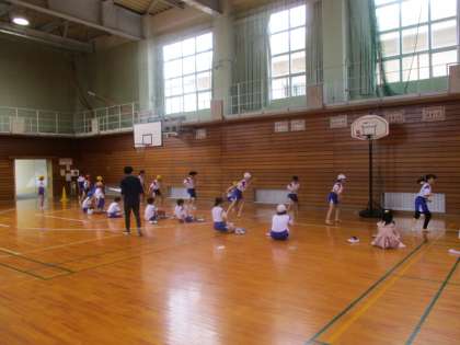 反復横跳びと上体起こしを行いました。 子供たちは熱心に頑張っていました。