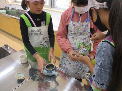 5年生 家庭科の様子 公開日 2024/05/10 更新日 2024/05/10 5年生 家庭科の学習でお茶をいれました。 初めてお茶をいれる子供や緑茶を初めて飲む子供もたくさんいて、それぞれ「にがい!」「おいしい!」「2回目の方が苦くなくていい!」など感想を口々にしていました。
