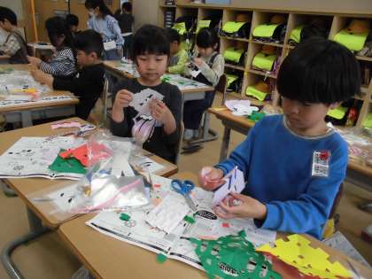 1年生 図画工作科「ちょきちょきかざり」 公開日 2024/05/10 更新日 2024/05/10 1年生 1年生では、図画工作科の時間に「ちょきちょきかざり」を制作しています。折り紙を三角や四角に折って、切り込みを入れて、様々な形の飾りを作っていました。どんな作品ができるかな。