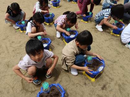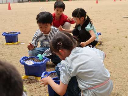 あさがおの種を植えました。「何色の花が咲くかな。」と心待ちにしている子供たちがたくさんいました。