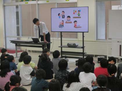 5年生 学年集会 公開日 2024/05/16 更新日 2024/05/16 5年生 学年集会で、今年の総合の学習について話を聞いて活動の見通しをもちました。 クイズに答えながら速星小学校の昔の様子を考えました。