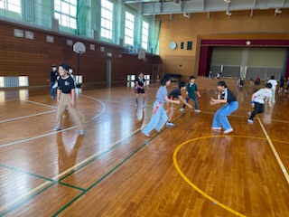 昼のつどいの時間で、しっぽ取りをしました。