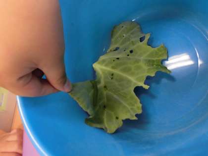 実際にアオムシを観察して、昆虫の様子について学習を深めています。