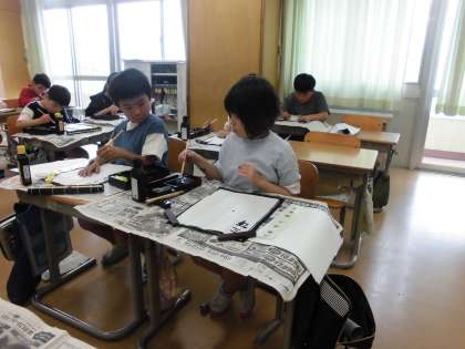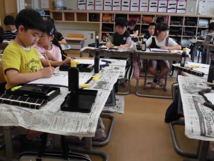 文字の大きさや始筆に気を付けながら、自分の名前の練習をしました。