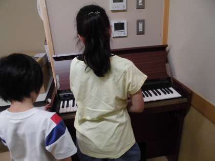 友達と譲り合いながら、弾きたい曲を演奏しています。