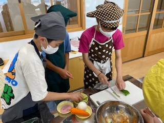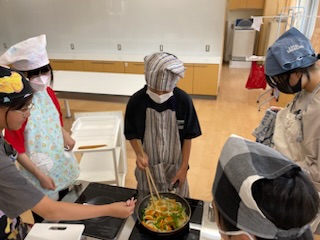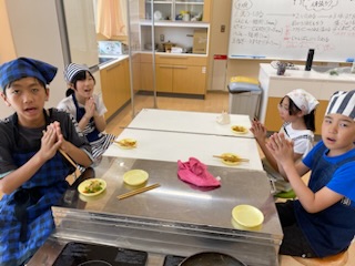 調理実習をしました。苦戦しながらも協力して楽しく調理できました。