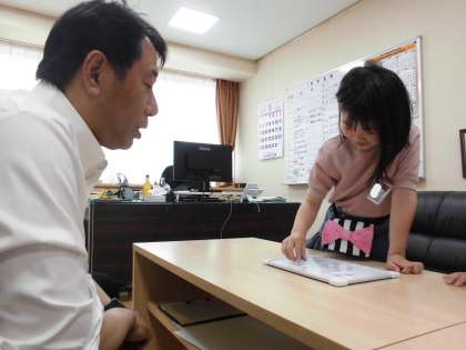 1年生 校長先生の「ちょこっとクイズ」にチャレンジ! 公開日 2024/05/23 更新日 2024/05/23 1年生 今日の大休憩の時間に校長室から子供たちの元気な声が聞こえてきました。覗いてみると、1年生の児童が校長先生からの「ちょこっとクイズ」に回答していました。3日間連続で校長室で問題に取り組んでいるということで、子供たちの諦めない気持ちが素敵だなと心があたたかくなりました。 正解まで、あと一歩なようです。明日こそは正解できるかな?