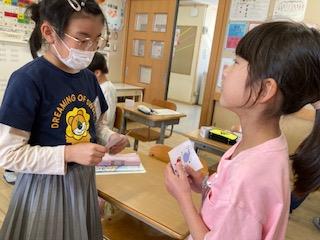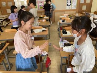 4年生 外国語活動 コミュニケーションの様子 公開日 2024/05/23 更新日 2024/05/23 4年生 カードを使って天気を聞いたり、友達に遊びを誘ったりしました。持っているカードを友達と交換するのが楽しかったようです。