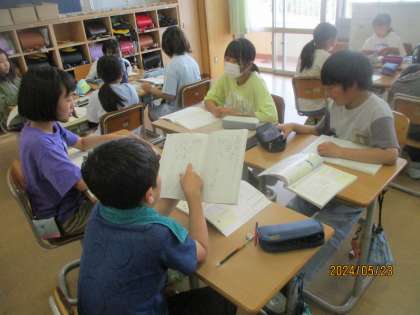 グループで互いの発表を聞き取り、感想を書き合いました。