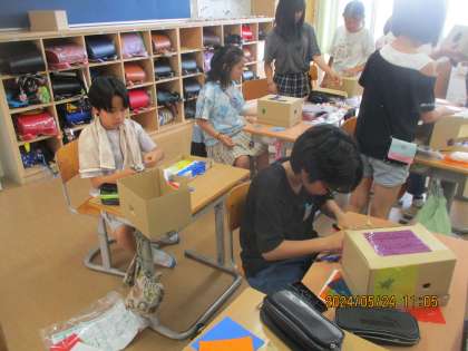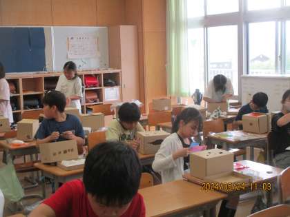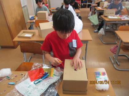 5年生 図画工作科 のぞいてみると2 公開日 2024/05/27 更新日 2024/05/27 5年生 図画工作では、段ボール箱の中に自分の世界を表現するため、工作をしました。 日が経つにつれて作品がどんどん鮮やかになってきました。楽しみです。