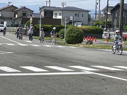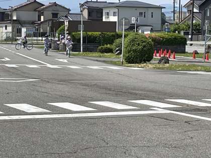 今度は、自転車に乗って、見通しの悪い道の曲がり方の練習をしました!