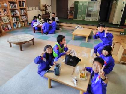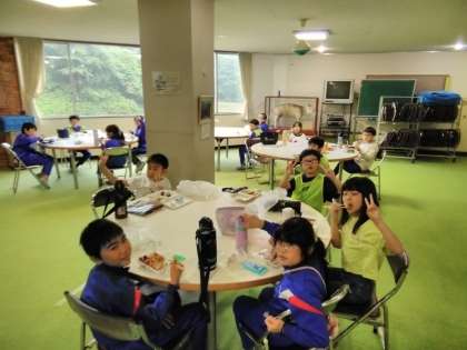 午前中の活動を終え、美味しそうにお弁当を食べています。