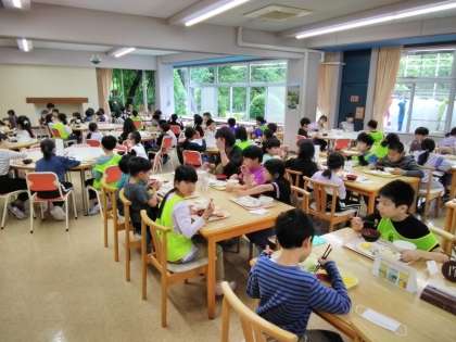 朝の体操のあと、朝食を食べています。 参加者みんな体調は良いです!