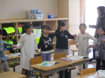 セブンステップスの音楽に合わせて、みんなで踊りました。笑顔で楽しんでいました。