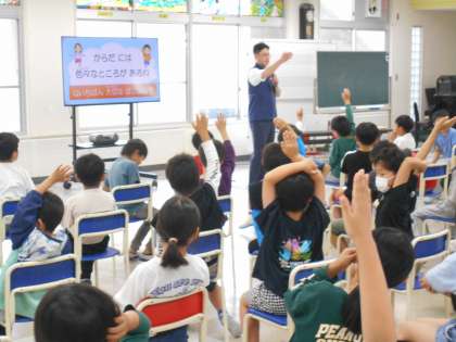 2年生 くもくん教室 公開日 2024/05/31 更新日 2024/05/31 2年生 5月の学習参観は、富山県警察の方を講師にお招きして、「くもくん教室」を行いました。人の体にはプライベートゾーンと呼ばれる、特に守るべき場所があることを教えていただきました。