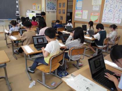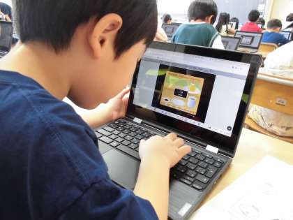 1年生では、教科や活動に合わせて授業の中でクロームブックを使って学習をしています。今日は、「寿司打」というタイピングのゲームを初めて行いました。画面を見ながら、同じアルファベットを一生懸命探して、文字を打っていました。「6年生のお兄ちゃん、お姉ちゃんのように文字がスラスラ打てるようになりたい!」と何度もチャレンジしている姿が見られました。諦めない心が素敵ですよね。1年生のみんな!その調子!