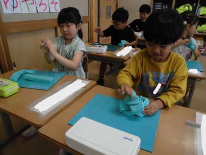 1年生 図画工作科 ねんどであそぼう(パート1) 公開日 2024/06/06 更新日 2024/06/06 1年生 1年生の図画工作科では、粘土遊びを行っています。 今日は、小学校に入学して初めての粘土遊びだったので、「ねんどたいそう」と題して粘土で様々な形をつくりました。トントンと叩いて平べったい形にしたり、ころころと転がし細長い形にしたりなど、試していました。