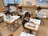 アサガオの本葉が出てきました。そこで、アサガオに肥料をやり、アサガオを観察しました。「早く花が見たい」「もっと大きくなってほしい」と話すなど、みんなアサガオの生長を楽しみにしていました。