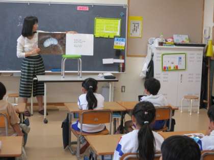 朝の時間に、ボランティアの方によるお話の会(読み聞かせ)がありました。ダンゴムシの秘密についての話に、みんな目を輝かせて聞いていました。