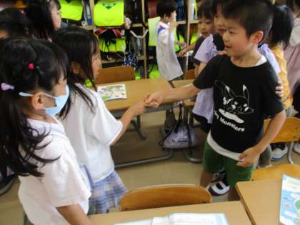 1年生 音楽科 はくをかんじとろう 公開日 2024/06/10 更新日 2024/06/10 1年生 曲に合わせて、前後に動いたり、曲の終わりにじゃんけんをしたりしました。曲に合わせて拍を感じ取っていました。