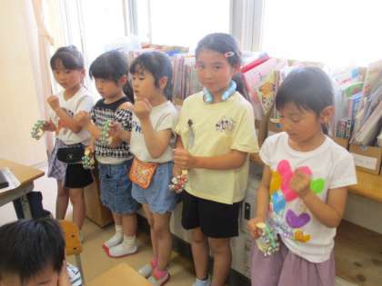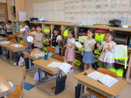 1年生 音楽科 はくをかんじとろう 公開日 2024/06/12 更新日 2024/06/12 1年生 しろくまのジェンカという曲に合わせて、すずやタンバリン、カスタネットを使ってリズム打ちをしました。拍を感じ取って活動できました。