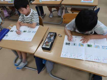 かたかなのドリルを書き始めました。「ン」と「ソ」、「シ」と「ツ」の違いに気を付けながら書きました。