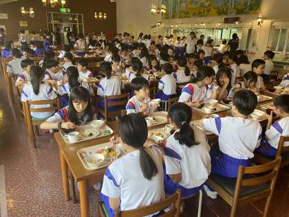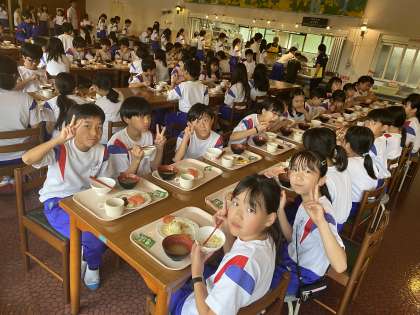 朝食の様子です。朝からご飯をおかわりしている子もいました。みんな元気いっぱいです。