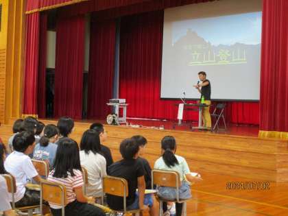 登山家の佐伯友彦さんを講師に迎え、立山登山について事前学習を5,6年生が行いました。立山の歴史や自然、また、登山の心構えなど丁寧に教えていただきました。