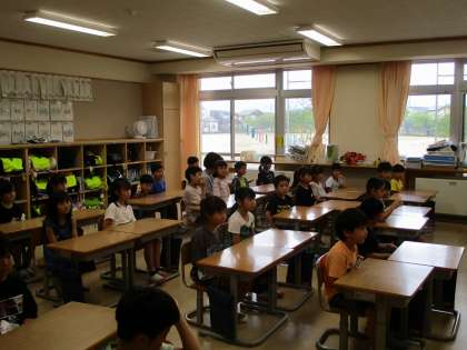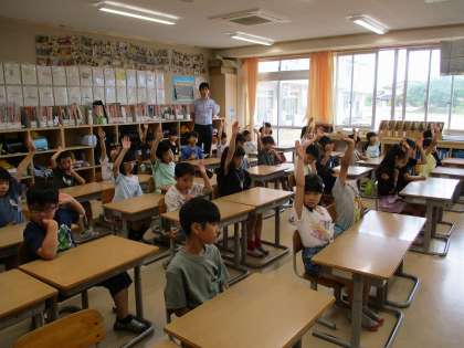 1学期 終業式 公開日 2024/07/25 更新日 2024/07/25 最近の出来事 7月24日(水)第1学期終業式を行いました。前日の猛暑もあり、熱中症予防のため各教室で、式に参加をしました。校長先生のお話、2年・4年・6年の児童代表の発表があり、みんな真剣に聴いていました。