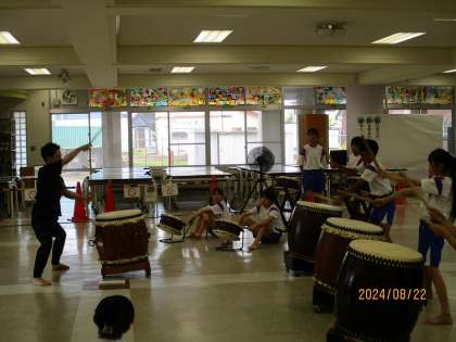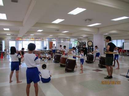 夏休みの2日間、お囃子プロジェクトの練習がありました。講師の先生に構えや打ち方を丁寧に教えていただきました。