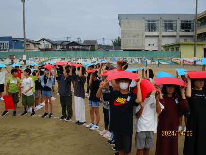 150周年記念航空写真撮影 公開日 2024/09/03 更新日 2024/09/03 最近の出来事 1学期より延期していた150周年記念航空写真と全校記念写真を撮影しました。 高学年が校章の形を低・中学年で星の流れの形を作りました。できあがりはどうなるのか、楽しみです。