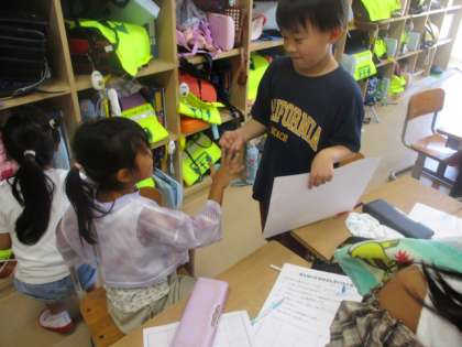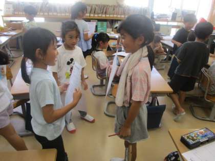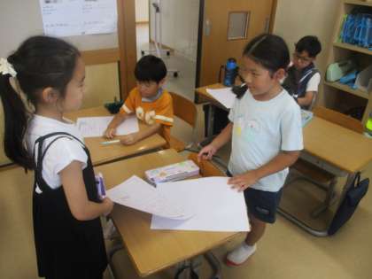 1年生 生活科 先生となかよし大作戦 公開日 2024/09/05 更新日 2024/09/05 1年生 現在、生活科では先生と仲良くなるための方法について考えています。先生への話しかけ方や、仲良くなるための短時間でできる遊びについてそれぞれが考えたものを学級内で練習しました。