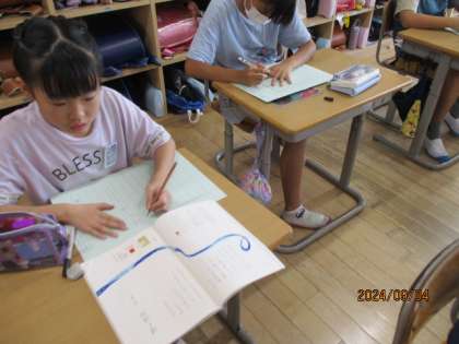 静かな雰囲気の中、集中して視写に取り組んでいました。