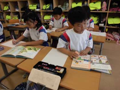 1年生は、図画工作科の時間に「おはなしだいすき」の学習を行っています。