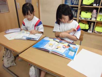 今日は図書室へ行き、絵本を読んで、自分のお気に入りの「おはなし」を探しました。