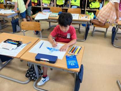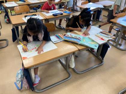1年生 図画工作科 お話大好き 公開日 2024/09/06 更新日 2024/09/06 1年生 選んだお話の続きを考えたり、アレンジしたりして絵を描きました。次回はもっと大きな画用紙にクレヨンと水彩で絵を描いていきます。