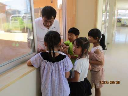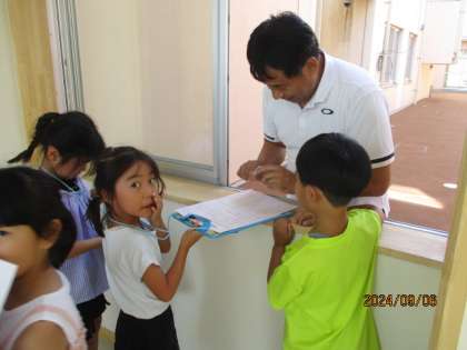 1年生 生活科 先生と仲良し大作戦 公開日 2024/09/11 更新日 2024/09/11 1年生 学校の先生たちの名前を知ったり、仲良くなったりするための活動が始まりました。休み時間に先生たちのところへ進んでいき、勇気をもって話しかけています。