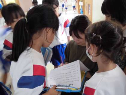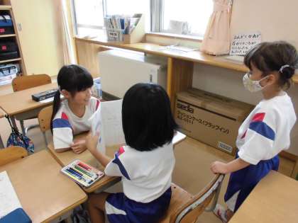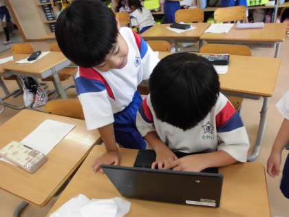 1年生 大休憩の様子 公開日 2024/09/12 更新日 2024/09/12 1年生 大休憩の時間の子供たちの様子です。教室で自由帳に絵を描いて友達と見せ合ったり、クロムブックでタイピングにチャレンジしたりと、友達と一緒に過ごしています。 生活科の「せんせいとなかよし」で速星小学校にいる先生方に積極的に話しかけ、じゃんけんやしりとりなどの簡単なゲームを一緒に行い、他学年の先生とも交流しています。