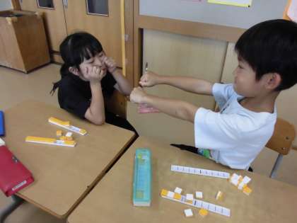 今日は、10から20までの学習後に隣の友達とブロックをつかって数字クイズをしました。ペアによって問題の出し方が異なっており、子供たちの発想力の豊かさを感じました。ぜひお家でもお子さんと一緒に数字クイズにチャレンジしてみてください!