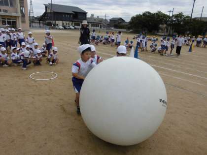 今日は、入場から退場までの通し練習のあと、実際に大玉転がしにチャレンジ!