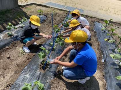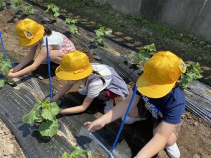 子供たちの育てている野菜がぐんぐん大きくなってきました。野菜の観察を通して、子供たちは様々なことに気付きました。