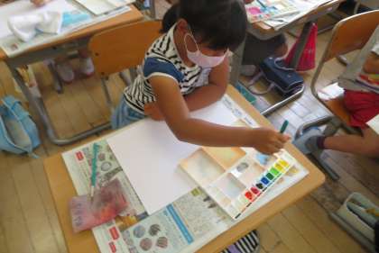 絵のぐ+ふで+水=いいかんじ!(図画工作科)
