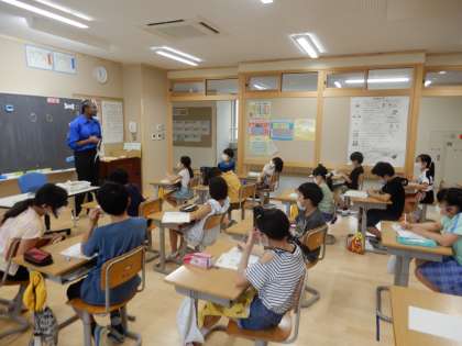 ALTの先生と外国語活動 公開日 2020/06/11 更新日 2020/06/11 4年生 今日はALTのダニエル先生との2回目の外国語活動でした。 「Good morning.」「Good afternoon.」「Good night.」など、時間によるあいさつのちがいを学習しました。ユーモラスに教えてくださるダニエル先生の外国語活動に、子供たちは楽しく取り組んでいます。